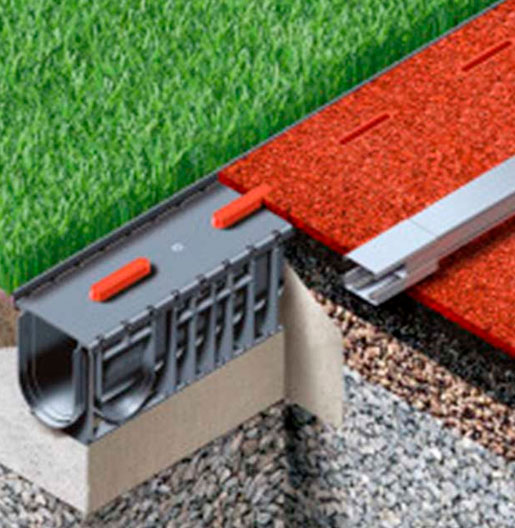 Capacidad de Drenaje: Las Canaletas SportFix están diseñadas para proporcionar una evacuación eficiente del agua en áreas deportivas, como campos de fútbol, pistas de atletismo y canchas de tenis. Gracias a su diseño optimizado, estas canaletas pueden manejar grandes volúmenes de agua de lluvia, evitando así la acumulación y el estancamiento en la superficie de juego.