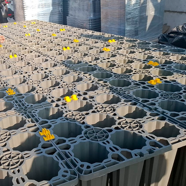 Módulo resistente fabricado mediante 2 placas de polipropileno unidas a presión y diseñado para reemplazar a las zanjas tradicionales con bolones. Debido al elevado índice de vacío que entrega el sistema (95%), permite reducir considerablemente los volúmenes de las zanjas de drenajes en comparación con los bolones. Su ligero peso permite un transporte e instalación en obra mucho más rápida, limpia y económica.