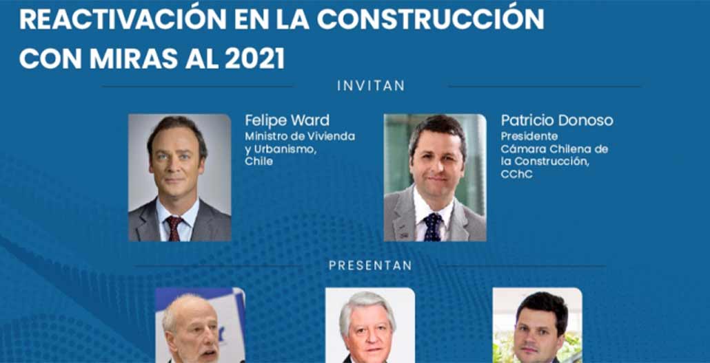 En este marco, es que el ministro de Vivienda y Urbanismo, Felipe Ward junto al presidente de la Cámara Chilena de la Construcción / CChC, Patricio Donoso quieren invitarlo a usted al seminario online “Reactivación en la construcción con miras al 2021”.